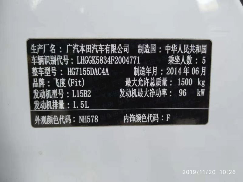 海豐二手車(chē)2014年8月本田飛度GK5,6.Xx萬(wàn)元,自動(dòng)1.5L EX CVT精英型。白色有天窗,一鍵啟動(dòng),真皮座椅,彩屏中控導(dǎo)航,倒車(chē)影像。前碟剎,后鼓剎。年審和保險(xiǎn)至2020年6月。新車(chē)落地11萬(wàn)多元。好開(kāi)省油耐用,海豐看車(chē)。VIN: